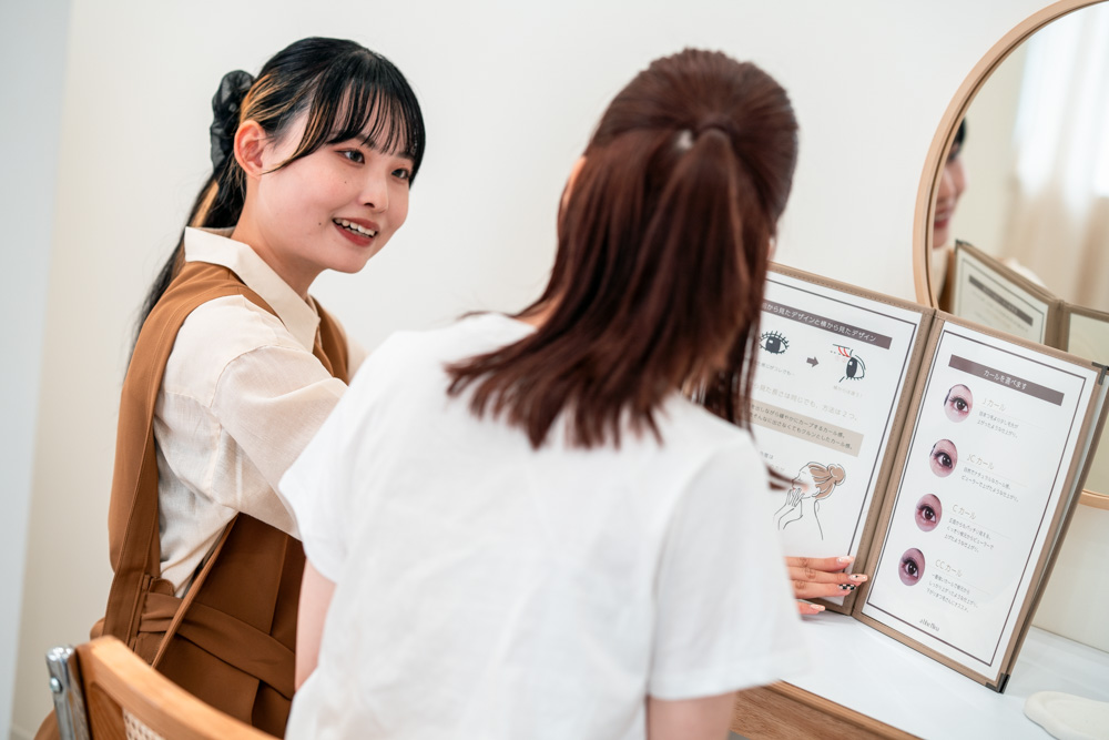 美容師免許を持っていてもまつエク&まつげパーマができる人はほとんどいません。業務時間内で行う技術レッスンで基礎からしっかりと学べます。子育てを経験している従業員も多く、体調不良など急な対応はお互い様。サポートし合える環境になっています。