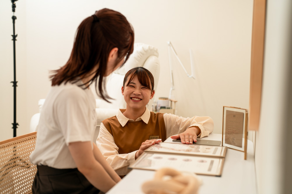 お客様への施術・店販商品のご案内を行います。空き時間にはSNSの運用業務やストック作成をします。